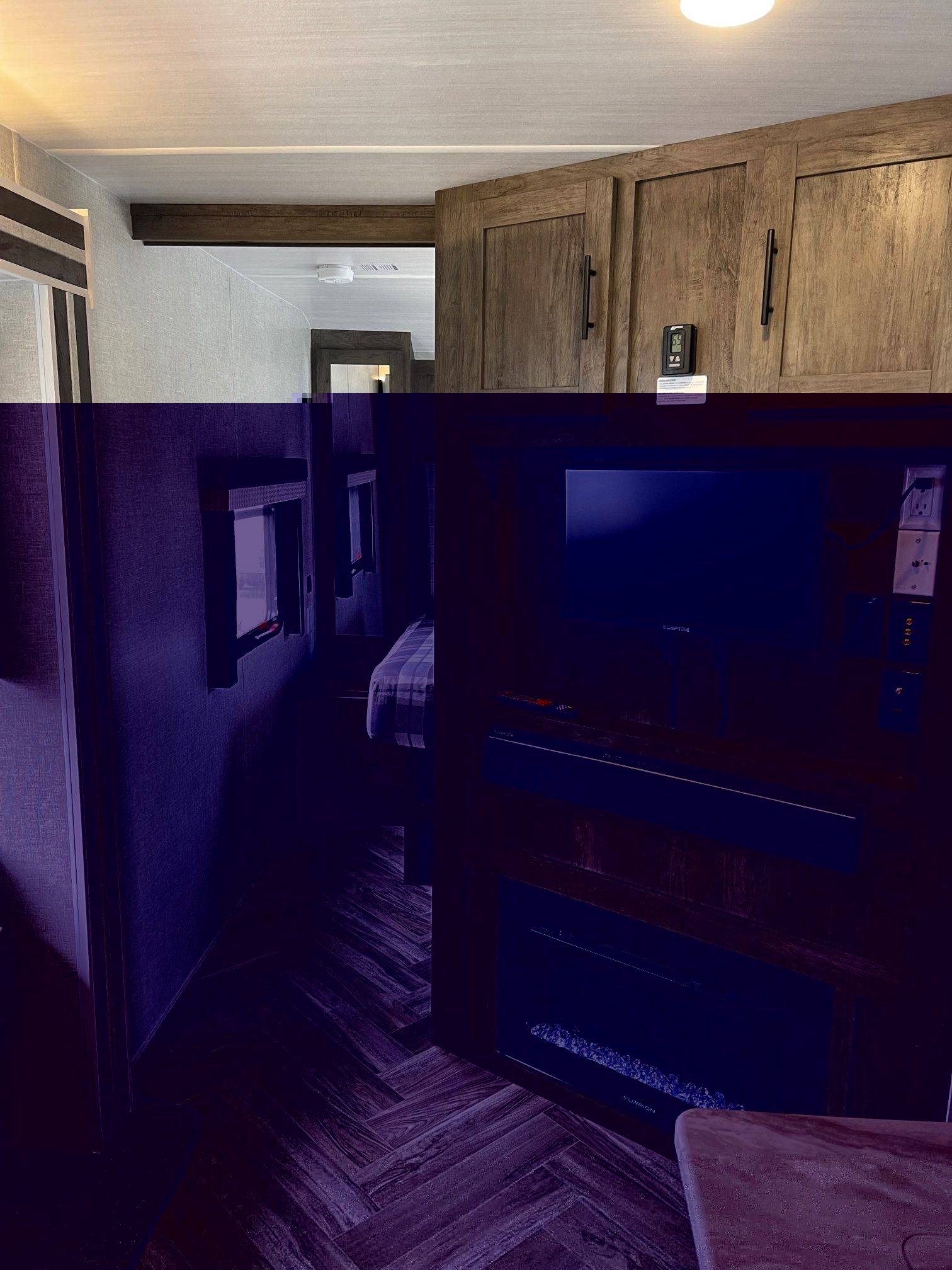 Great for families or a large group of friends. This models offers a private queen bedroom, a large bathroom with its own entry door from the outside, a large slide out with a U-shaped dinette and couch that can be made into beds, and 2 double bunks. As with all our Ultimate trailers, this trailer rental is delivered with all the extras- generator, camp chairs, lounge chairs, table, mat, BBQ, and firewood.